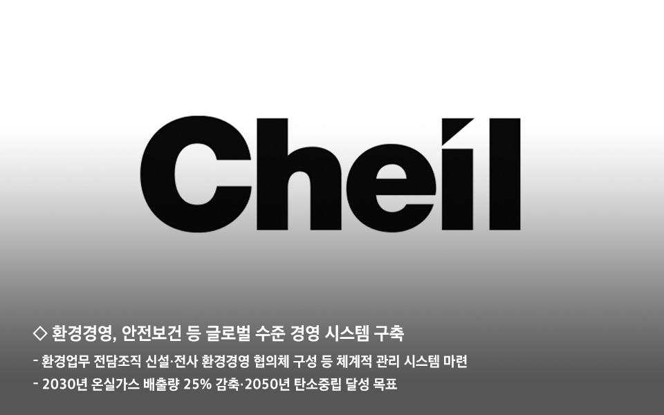 제일기획은 2030년 온실가스 배출량을 25% 감축하고, 2050년에 탄소중립을 달성하는 것을 목표로 전사적 환경경영 체계를 강화하고 있다. 지난 2024년 12월 환경 업무 전담조직인 환경경영팀을 신설하고, 전사적 환경경영 협의체를 구성하는 등 환경 경영을 위한 체계적인 관리 시스템을 마련했다.