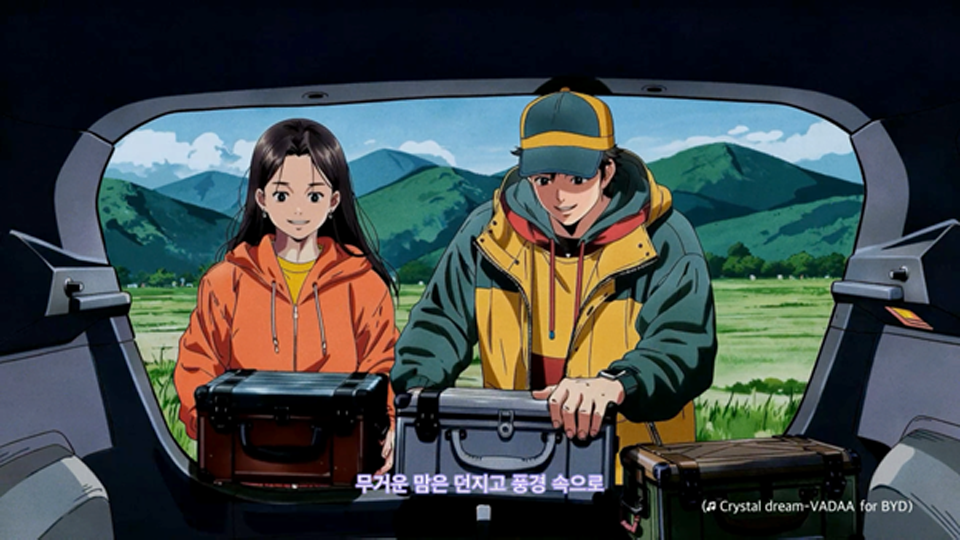 USP별로 각각 주행거리, 3D 서라운드 뷰, 실내 공간을 담은 세 편의 콘티를 토대로 제작하기 시작했다. AI로 원하는 질감의 애니메이션을 뽑아내는 건 생각보다 많이 까다로웠다. 특정 작가의 이름이나 이미지를 넣지 않고 프롬프트로만 영상을 뽑아내는 데 며칠이 걸렸지만, 결과적으로는 의도했던 스타일의 세 편의 필름이 제작되었다.