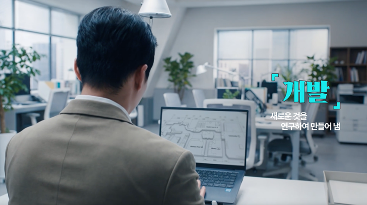 첫 번째는 ‘팩트의 게임’이다. 광고 중반부, 세 가지 팩트가 화면을 가로지른다. 시니어 플랫폼, 보장설계·자산관리, AI 헬스케어. 여기에 등장하는 서비스는 단순한 정보가 아니라 ‘개발자’라는 선언을 증명하는 증거물이다. 크리에이티브가 감성에만 기대면 설득력을 잃는다. 우리는 감성의 언어로 포장하되, 이성의 근거로 무장했다.
